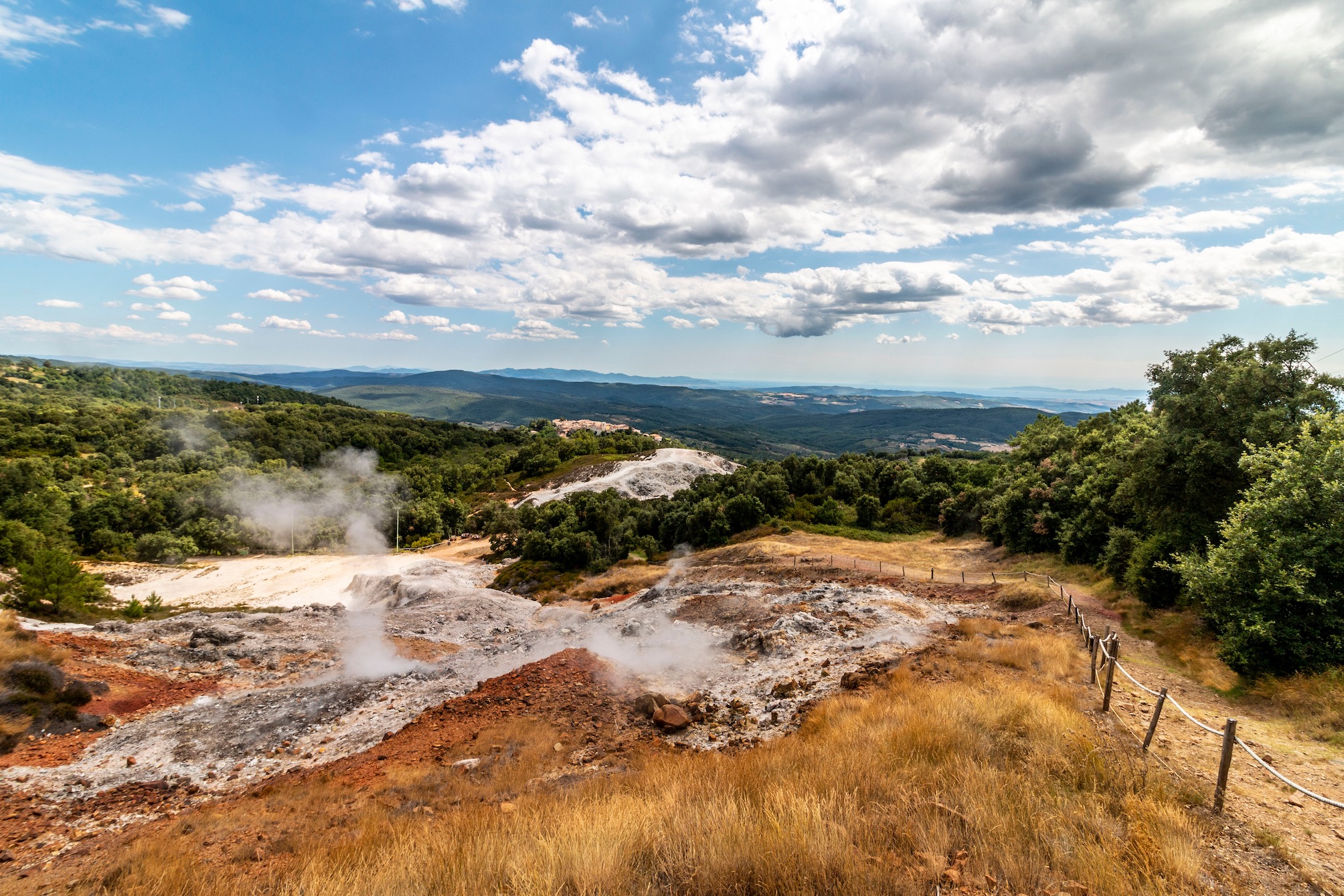 Viaggio al centro della Toscana tra soffioni boraciferi, musei, ciminiere in mezzo al bosco e paesaggi lunari
